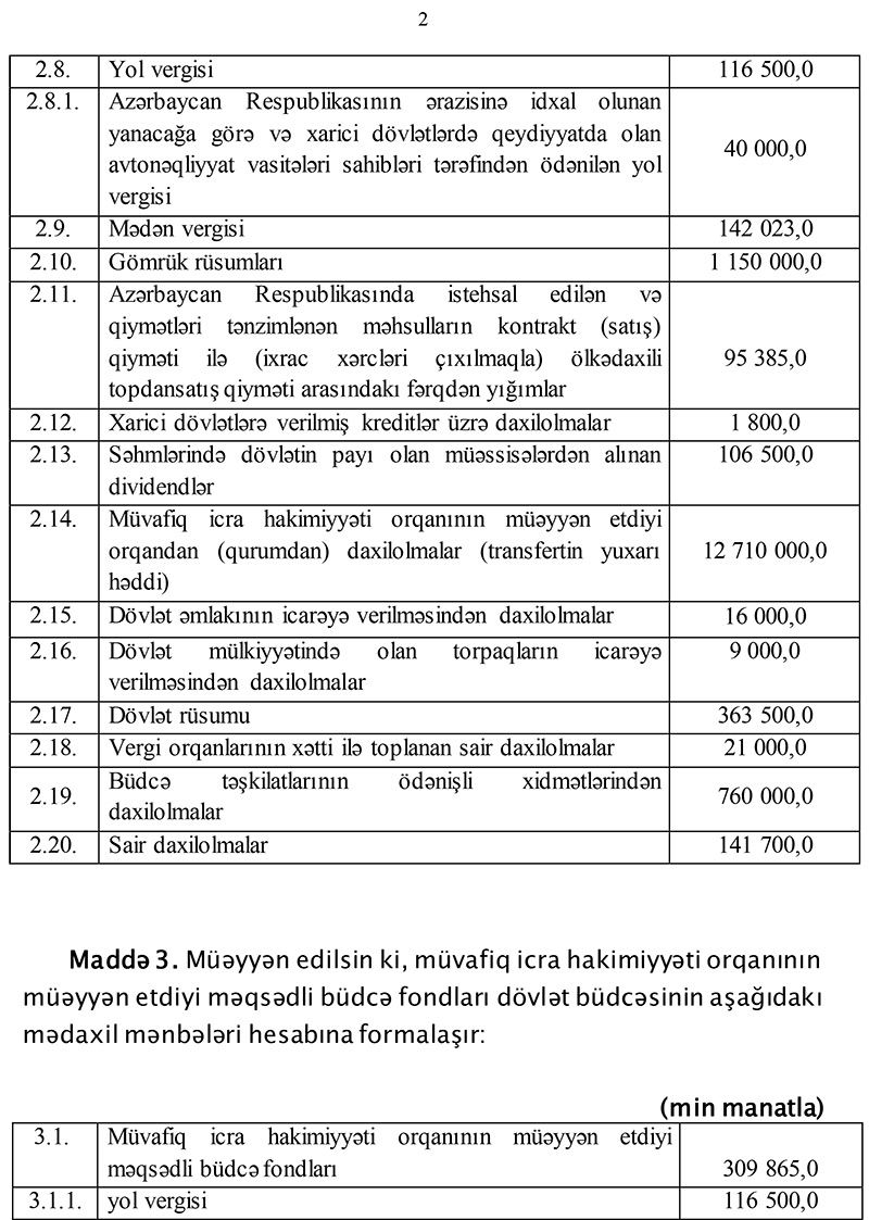 Prezident 41,7 milyard manantlıq büdcəni təsdiqlədi