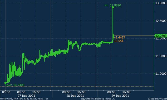Bakı vaxtı ilə saat 10:53-də Dollar/TL məzənnəsi 2,5% artımla 12,08 lirə səviyyəsində olub.