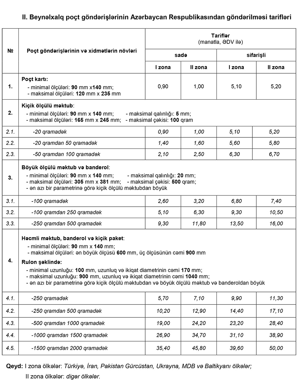 Qeyd edilib ki, yeni tariflər digər poçt operatorlarının tarifi ilə müqayisədə aşağı olmaqla yanaşı, xidmətlə bağlı xərcləri qarşılayacaqdır.