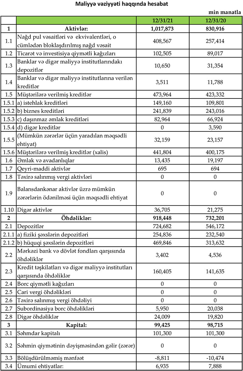 “Rabitəbank” 2020-ci ilin sonunda 830 milyon 916 min manat cəmi aktivlərə malik idi.