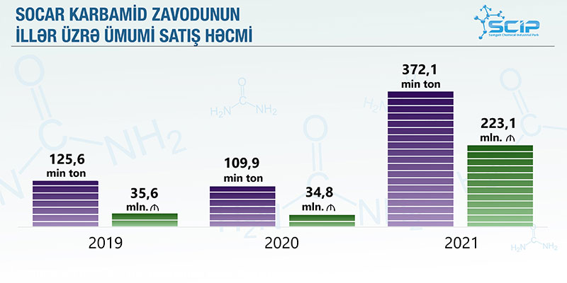 İqtisadiyyat Nazirliyinin yaydığı məlumatda bildirilir ki, son 3 il ərzində zavodda istehsal olunan karbamid gübrəsinin satışı 3 dəfə artmaqla, təxminən 372 min ton təşkil edib. Ötən il müəssisənin gəlirləri 6 dəfə artaraq 223 milyon manatı ötüb.