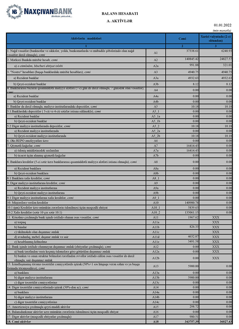 “Naxçıvanbank” ASC 2021-ci il üzrə maliyyə göstəricilərini açıqlayıb.