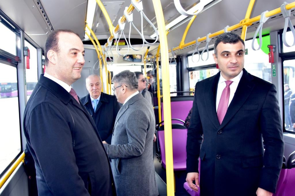 Təqdimat mərasiminin yekununda istehsalat bazası və yeni alınmış avtobuslara baxış keçirilib
