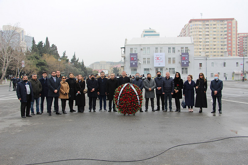 Faciə qurbanları ehtiramla yad edilib, abidənin önünə əklil qoyulub.
