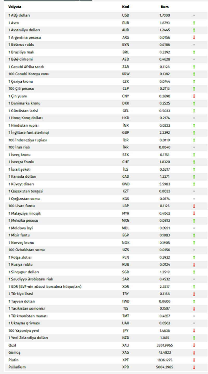 Dolların bazar ertəsi üçün rəsmi məzənnəsi müəyyən olunub