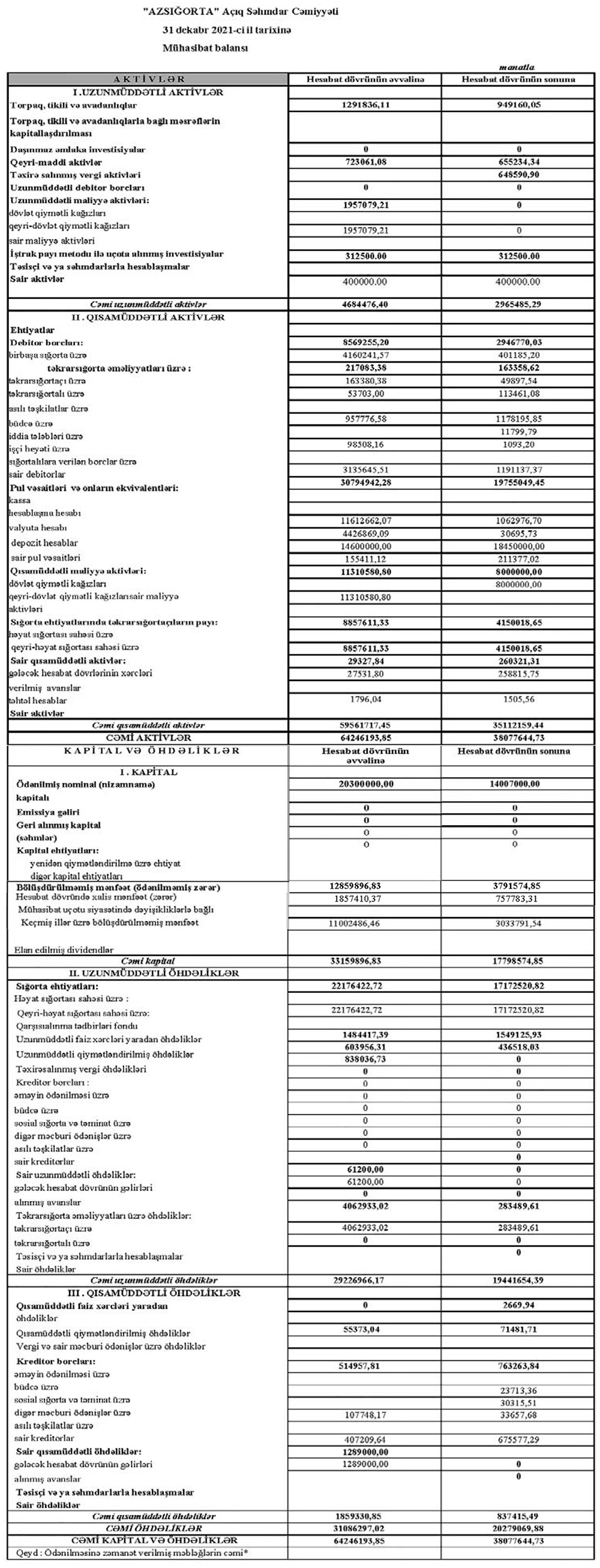 “Azsığorta” ASC-nin 2021-ci ildə xalis mənfəəti 2020-ci illə müqayisədə 2,4 dəfə azalaraq 758 min manat təşkil edib. Şirkət 2020-ci ili 1 milyon 857 min manat manat xalis mənfəət ilə bağlamışdı. Xalis mənfəətin geriləməsi gəlirlərin (əsasən yığımların) azalması və sığorta ödənişlərinin artması ilə əlaqədardır.
