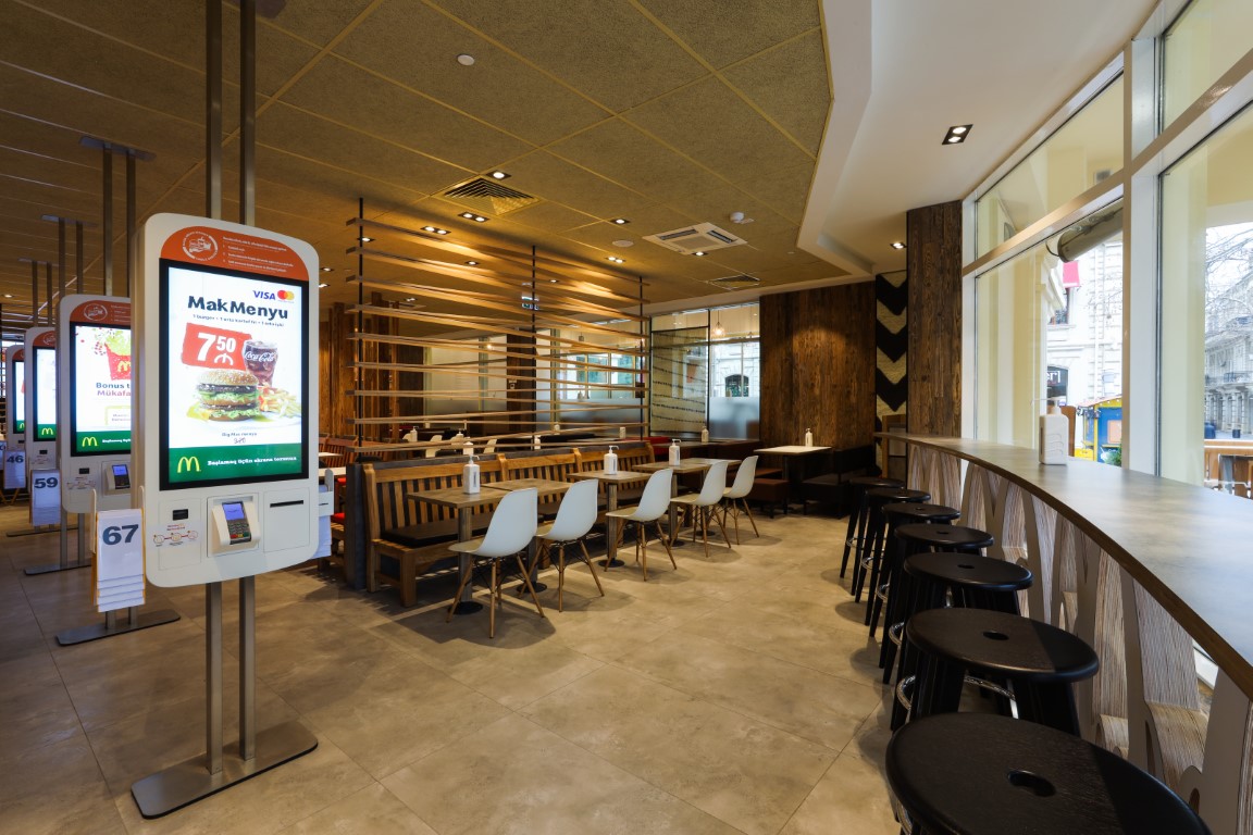 Artıq qonaqlar özünəxidmət köşkündə və ya kassada yeməyi sifariş verdikdən sonra masa arxasına keçərək sifarişini gözləyir(®) Bakının mərkəzində, Fəvvarələr Meydanında yerləşən Azərbaycanın ilk “McDonald’s” restoranı yenidən qapılarını qonaqların üzünə açıb.