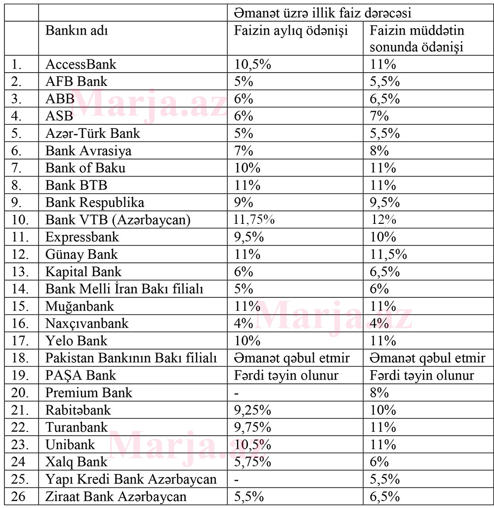 Qeyd edək ki, Azərbaycanda inflyasiya sürətləndiyindən və Mərkəzi Bank uçot dərəcəsini artırdığından bankların əmanət faizlərində də artım müşahidə edilir.