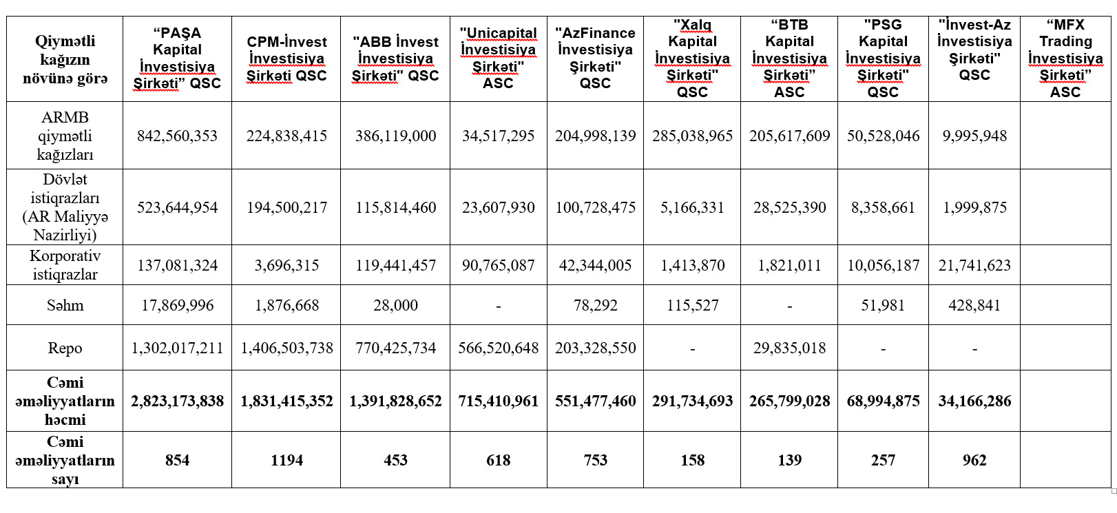 İnvestisiya şirkətlərinin dövriyyələri açıqlandı - SİYAHI