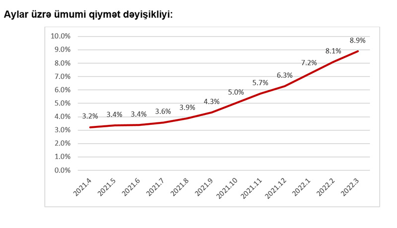 “Veysəloğlu Pərakəndə İndeksi”nə görə, 2022-ci ilin mart ayı üzrə müştərilərin ən çox aldığı məhsulların qiymətində keçən ilin mart ayına nisbətən 11,0% artım müşahidə edilib. Belə ki, tez köhnələn qida məhsullarının qiymətində keçən ilin mart ayına nisbətən 10,7% artım, quru, dondurulmuş qida məhsullarının, şirniyyat və spirtsiz içkilərin qiymətində 13,3% artım, spirtli içkilər və tütün məmulatlarının qiymətində isə 6,5% artım izlənilib.