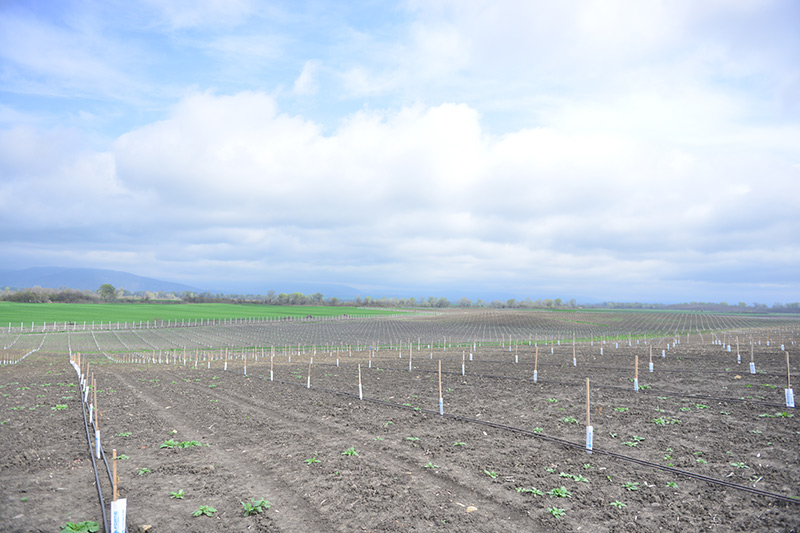 İntensiv əkin formasında (5x3 metr) salınmış bağlarda “Ferragnes”, “Ferraduel”, “Avijor Lauren” kimi məhsuldar fransız badam sortları əkilmişdir.