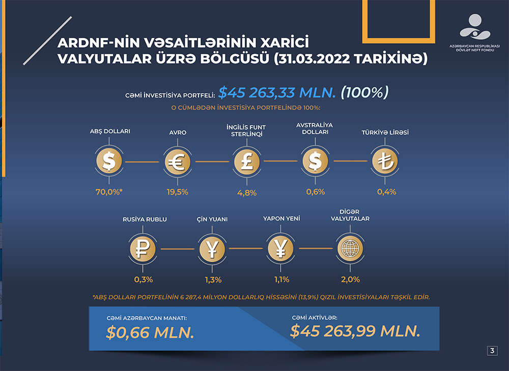 Azərbaycan Respublikası Dövlət Neft Fondunun (ARDNF) 2022-ci ilin ilk 3 ayı üzrə investisiya fəaliyyətinin yekunları.