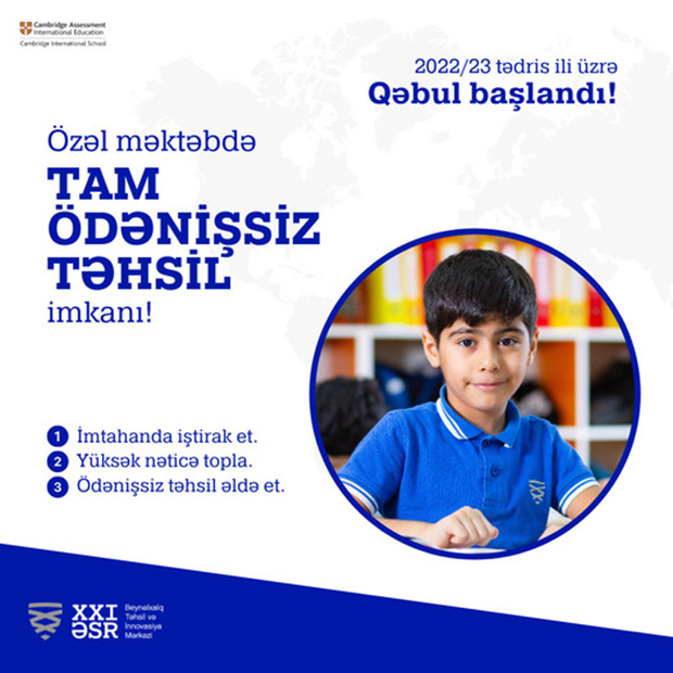Nəzərinizə çatdıraq ki, "XXI Əsr Beynəlxalq Təhsil və İnnovasiya Mərkəzi” ölkənin ilk özəl məktəblərindən biri kimi 2001-ci ildə təsis edilmişdir və hal-hazırda Azərbaycan, rus və ingilis bölmələri üzrə 3-17 yaşlı uşaqların milli və tanınmış beynəlxalq kurikulumlar üzrə təhsil aldığı tədris mərkəzlərindən biridir. Mərkəz, 500-dan çox şagirdə təhsil xidməti göstərir.