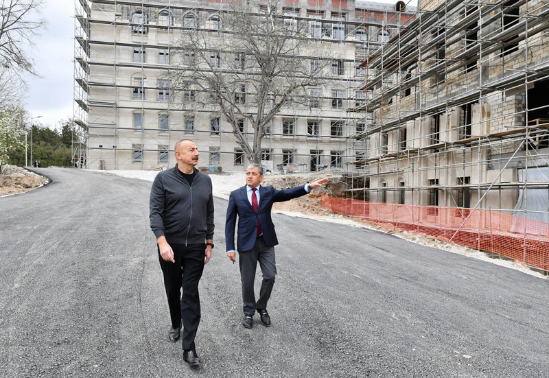 Sonra Prezident İlham Əliyev Şuşa şəhər inzibati binanın əsaslı təmiri və konfrans zalının tikintisi ilə tanış olub.