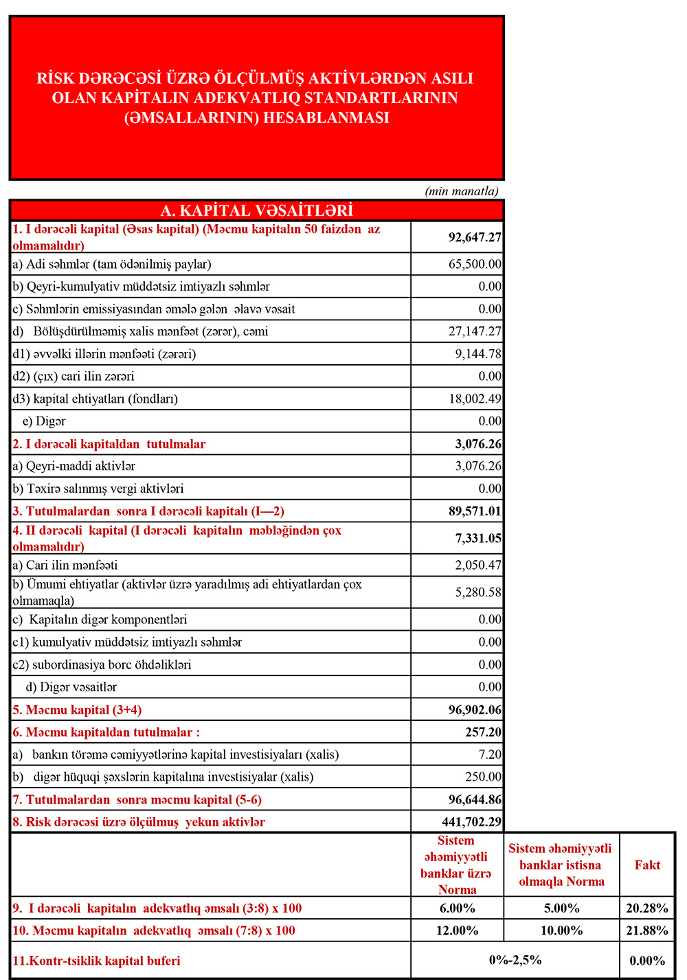 Müqayisə üçün qeyd edək ki, 2021-ci ilin yanvar-mart dövründə "Ziraat Bank Azərbaycan"ın cəmi əməliyyat gəlirləri 7 milyon 131 min manat, cəmi əməliyyat xərclərin 5 milyon 646 min manat, əməliyyat mənfəəti 1 milyon 489 min manat təşkil etmişdi. Bank əməliyyat mənfəətindən 992,3 min manat ehtiyata ayırdığından həmin dövrü 492,5 min manat xalis mənfəət ilə bağlamışdı.