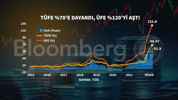 TÜİK-in məlumatına görə, istehsalçı qiymətləri indeksi aprel ayında əvvəlki ilin eyni dövrü ilə müqayisədə 121,82% artıb. Aylıq müqayisədə artım 7,67 faiz təşkil edib.