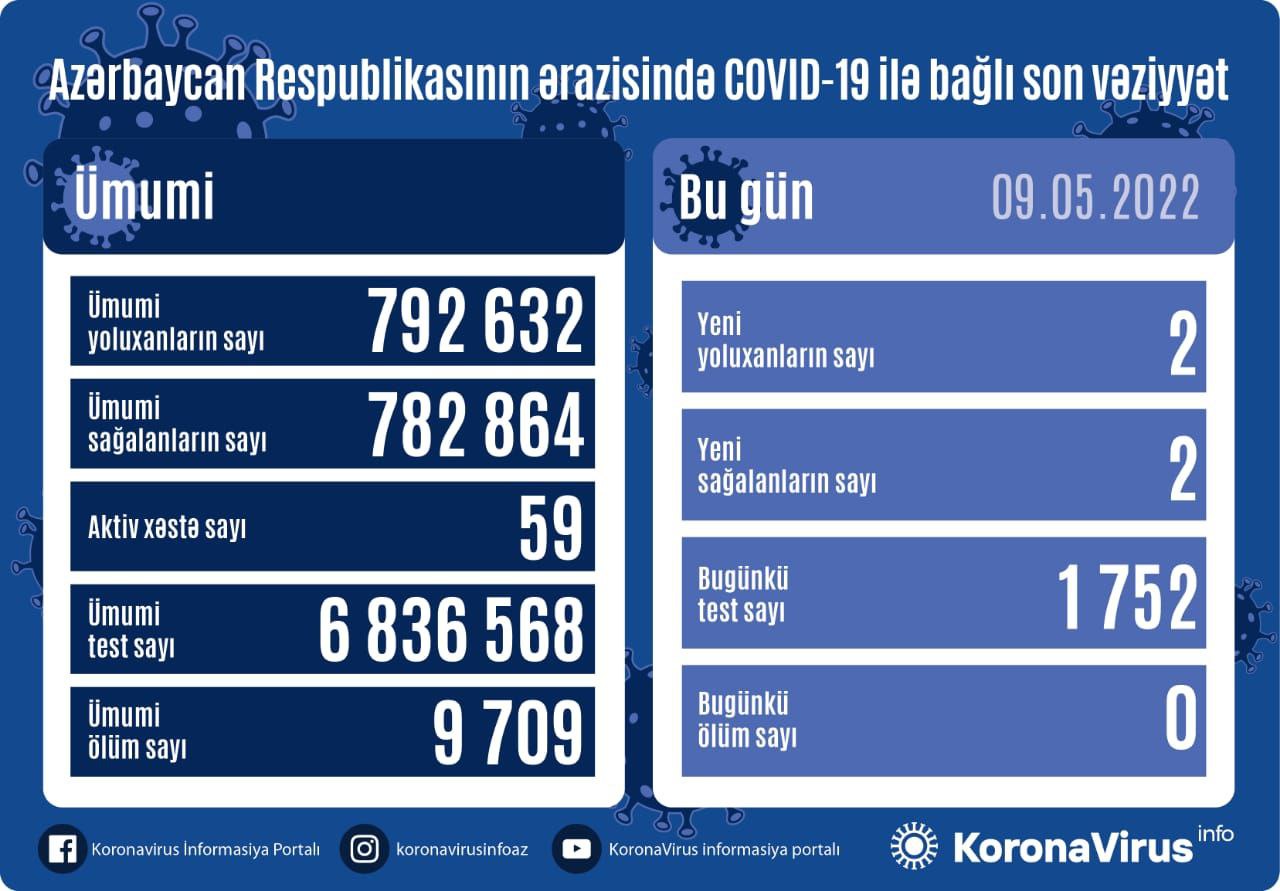 Azərbaycan Respublikasında koronavirus (COVID-19) infeksiyasına 2 yeni yoluxma faktı qeydə alınıb, 2 nəfər müalicə olunaraq sağalıb.