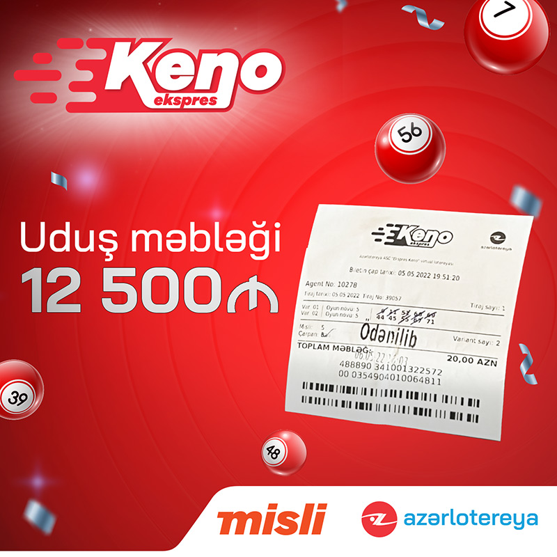 “Ekpres Keno” hər beş dəqiqə ərzində bir milyon manat qazanmaq imkanı verin unikal virtual lotereyadır. Lotereya həvəskarları paytaxtda və regionlarda fəaliyyət göstərən “Misli” məntəqələrinə yaxınlaşaraq həm şanslarını sınaya, həm də vaxtlarını əyləncəli keçirə bilərlər.