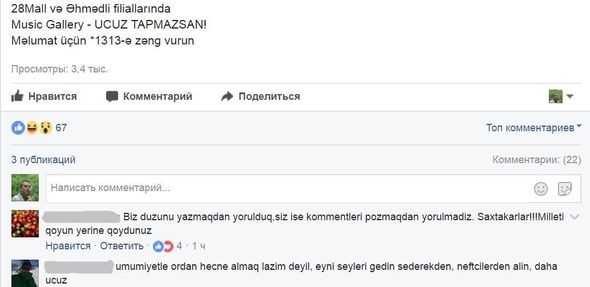 Müştərilər mağazanın sosial şəbəkə səhifəsində paylaşdığı fotoya yalan elan verdiyi üçün çoxsaylı şikayət və təhqirlər yazıblar.