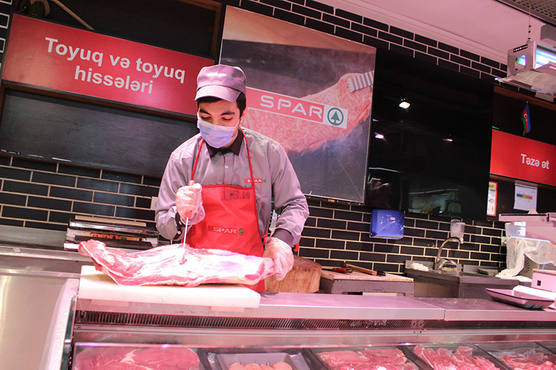 Əsas fəaliyyət istiqamətlərimizdən biri də yalnız yerli cins heyvanların ətindən istifadə etməklə həyata keçirilən ət emalıdır. Dadlı ət deyəndə, hər kəsin düşündüyü bölgələr olan Bərdə, Ağcabədi və Beyləqandan dana və quzular hər gün Qida Təhlükəsizliyi Agentliyinin (AQTA) rəsmi qeydiyyatından keçmiş mərkəzi kəsim məntəqələrinə gətirilir. Təzə ət emal olunaraq “Araz” və “Spar” supermarketlər şəbəkəsinin mağazalarında satışa çıxarılır. Son aylarda marketlərimizdə təzə ətin qiymətlərində gözəçarpan dəyişiklik olmayıb.