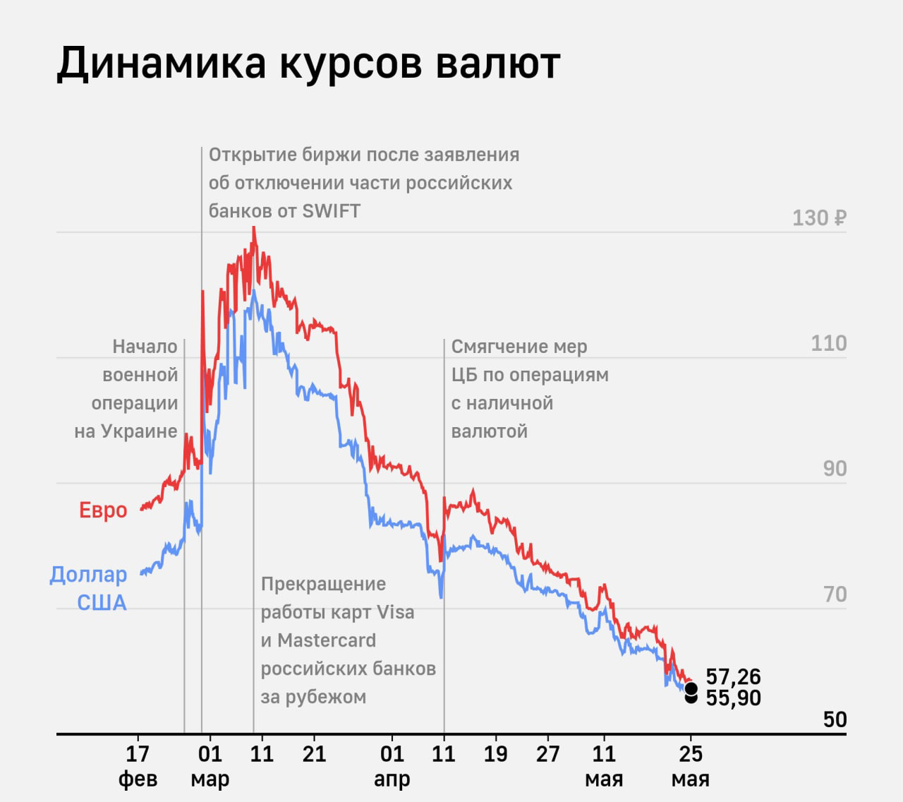 Moskva birjasının valyuta hərraclarında dolların məzənnəsi 2018-ci ilin fevralından bəri ilk dəfə 56 rubldan, avronun məzənnəsi 2015-ci ilin iyun ayından bəri ilk dəfə olaraq 58 rubldan aşağı düşüb.