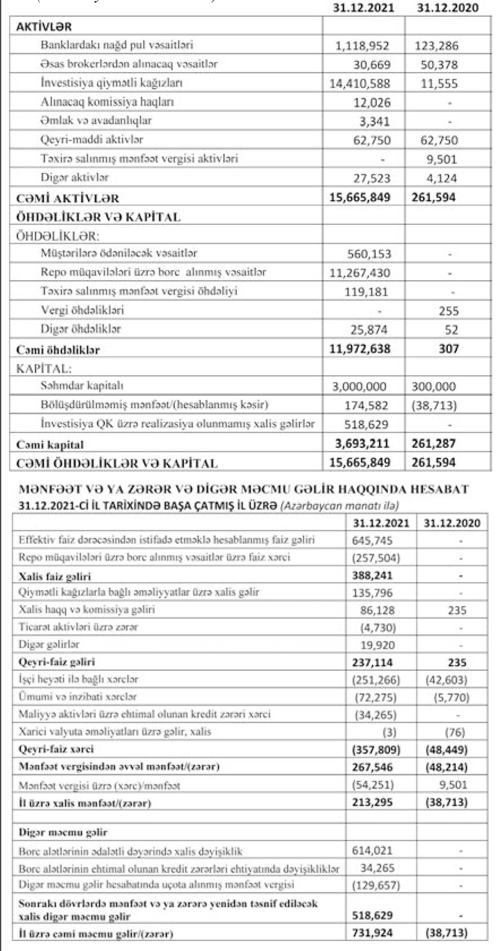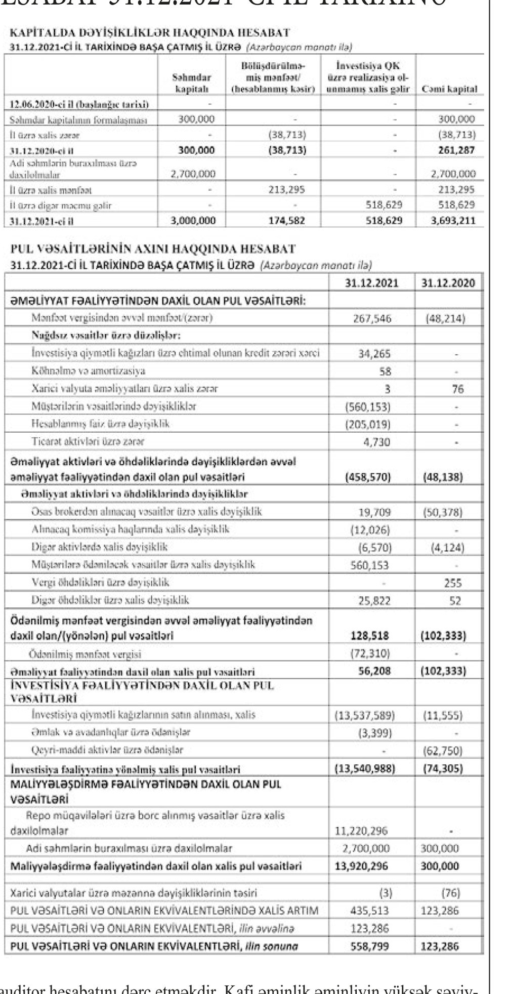 "ABB-İnvest İnvestisiya Şirkəti" QSC 2021-ci ili 213 min 295 manat xalis mənfəət ilə başa vurub. Halbuki, şirkət 2020-ci ili 38 min 713 manat xalis zərər ilə bağlamışdı.