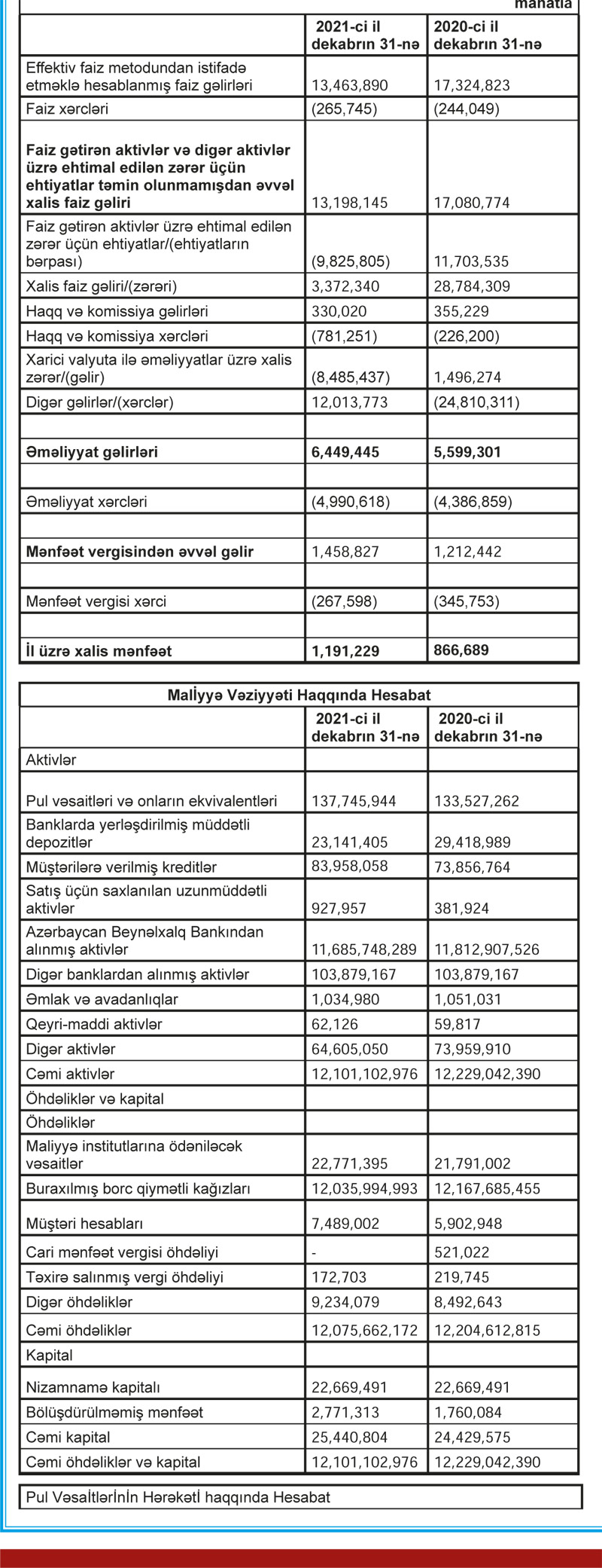 Marja.az xəbər verir ki, “Aqrarkredit”in faiz gəlirləri 2020-ci ildə 17 milyon 324 min 823 manat ikən, 2021-ci ildə 13 milyon 463 min 890 manat təşkil edib (22,2% azalıb). Təşkilatın haqq və komissiya gəlirləri isə 355 min 229 manatdan 330 min 20 manata geriləyib.