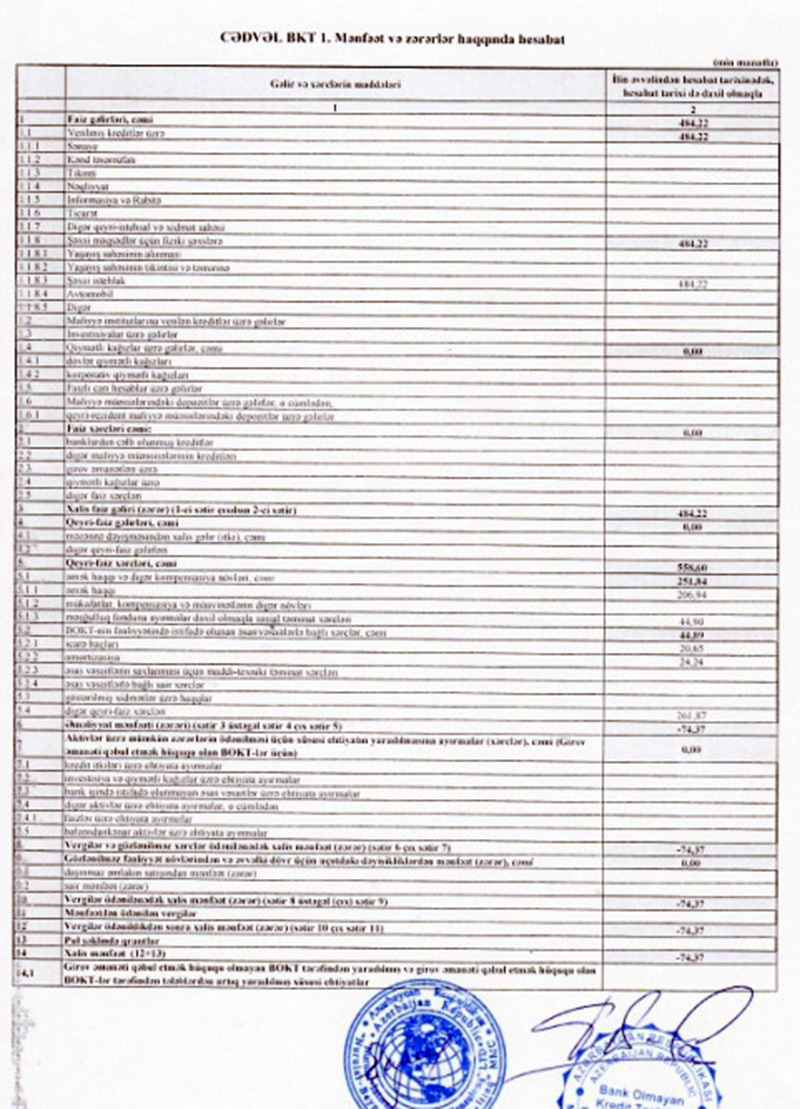 Ötən il Təşkilatın faiz gəlirləri 484 min manat təşkil edib.