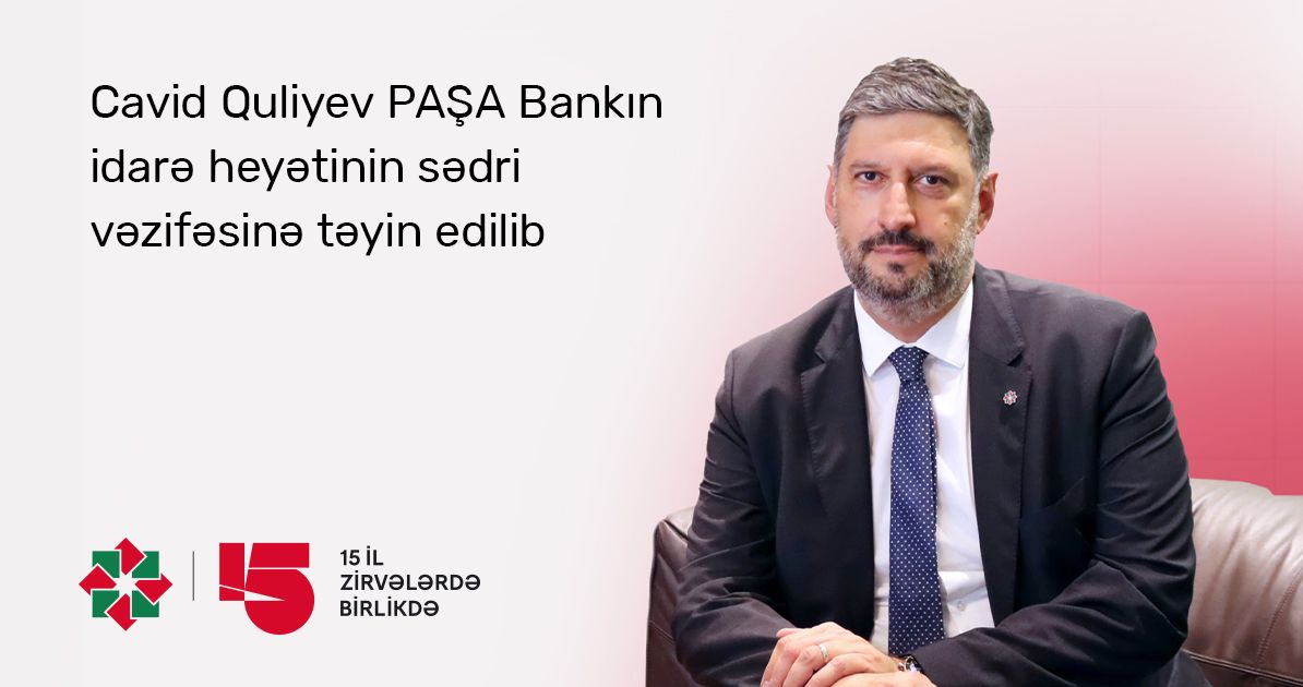 Bankın Səhmdarlarının Ümumi Yığıncağının qərarına əsasən, 9 iyun 2022-ci il tarixindən etibarən Cavid Quliyev “PAŞA Bank”ın Baş İcraçı direktoru və İdarə Heyətinin sədri vəzifəsinə təyin edilmişdir.