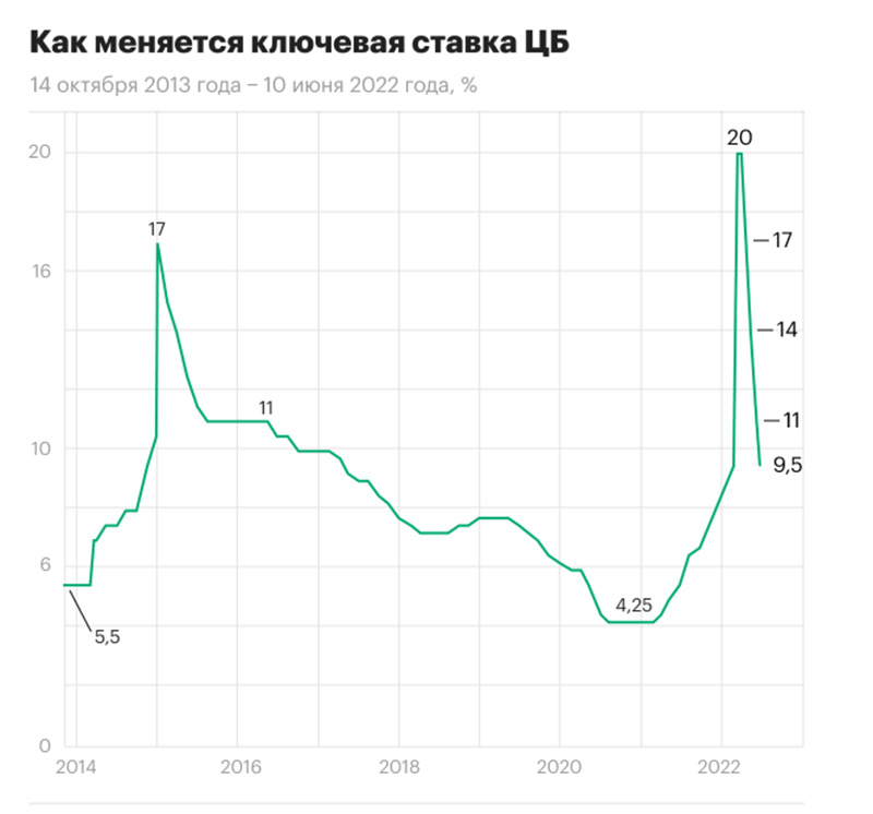 Qeyd edilib ki, bu, monetar siyasətin ardıcıl dördüncü yumşaldılmasıdır. Fevralın sonunda faizin rekord həddə - 20%-ə yüksəlməsindən sonra Rusiya Bankı dərəcəsini artıq üç dəfə aşağı salmışdı. İndi Mərkəzi Bankın uçot dərəcəsi böhrandan əvvəlki səviyyəyə qayıdıb. Fevral artımından əvvəl uçot dərəcəsi 9,5% idi.