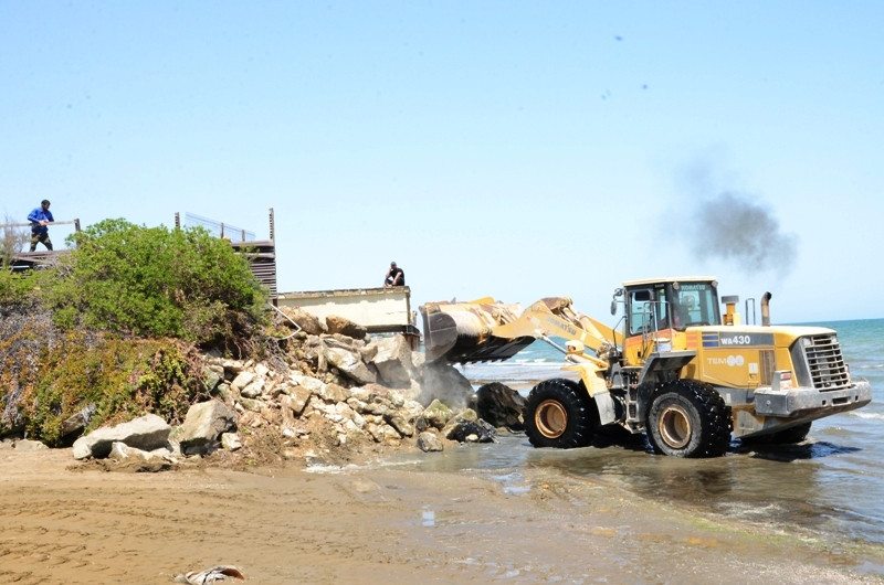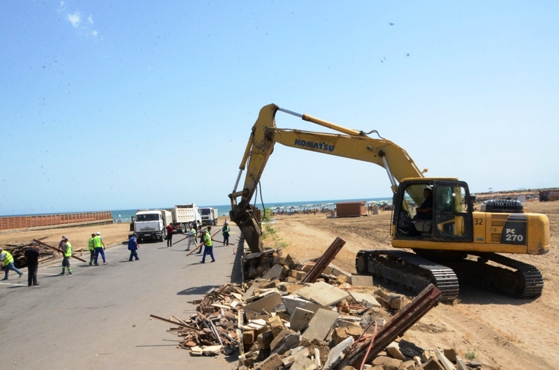 Dəniz sahilindəki qanunsuz hasar və tikililər sökülür