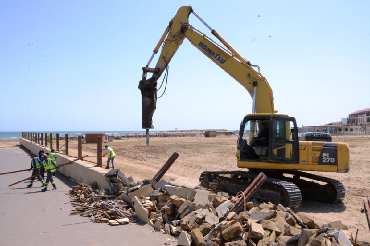“Qeyd olunan qanunsuzluqların aradan qaldırılması, eləcə də dövlət başçısı cənab İlham Əliyevin Xəzər dənizinin sahilboyu ərazilərinin qanunvericiliyin tələblərinə uyğun olaraq bərpa edilməsi və insanların dəniz sahilinə sərbəst giriş-çıxışı təmin edilməsi ilə bağlı müvafiq Sərəncamının icrası məqsədi ilə səhər saatlarından etibarən Bakı Şəhər və Xəzər Rayon İcra Hakimiyyətlərinin, kommunal qurumların texnikaları və işçiləri tərəfindən Buzovna qəsəbəsində sahilyanı ərazilərdəki qanunsuzluqların aradan qaldırılmasına başlanılıb. Zəbt edilən torpaq sahələrinin hasarları, ərazidə bəzi sənədsiz tikililər, çimərlik ərazisinə daxil olmağa mane olan sədlər sökülür. Həmçinin kommunal xidmətlərin işçiləri tərəfindən qayalıq ərazilərinin müxtəlif tullantılardan təmizlənməsinə başlanılıb.