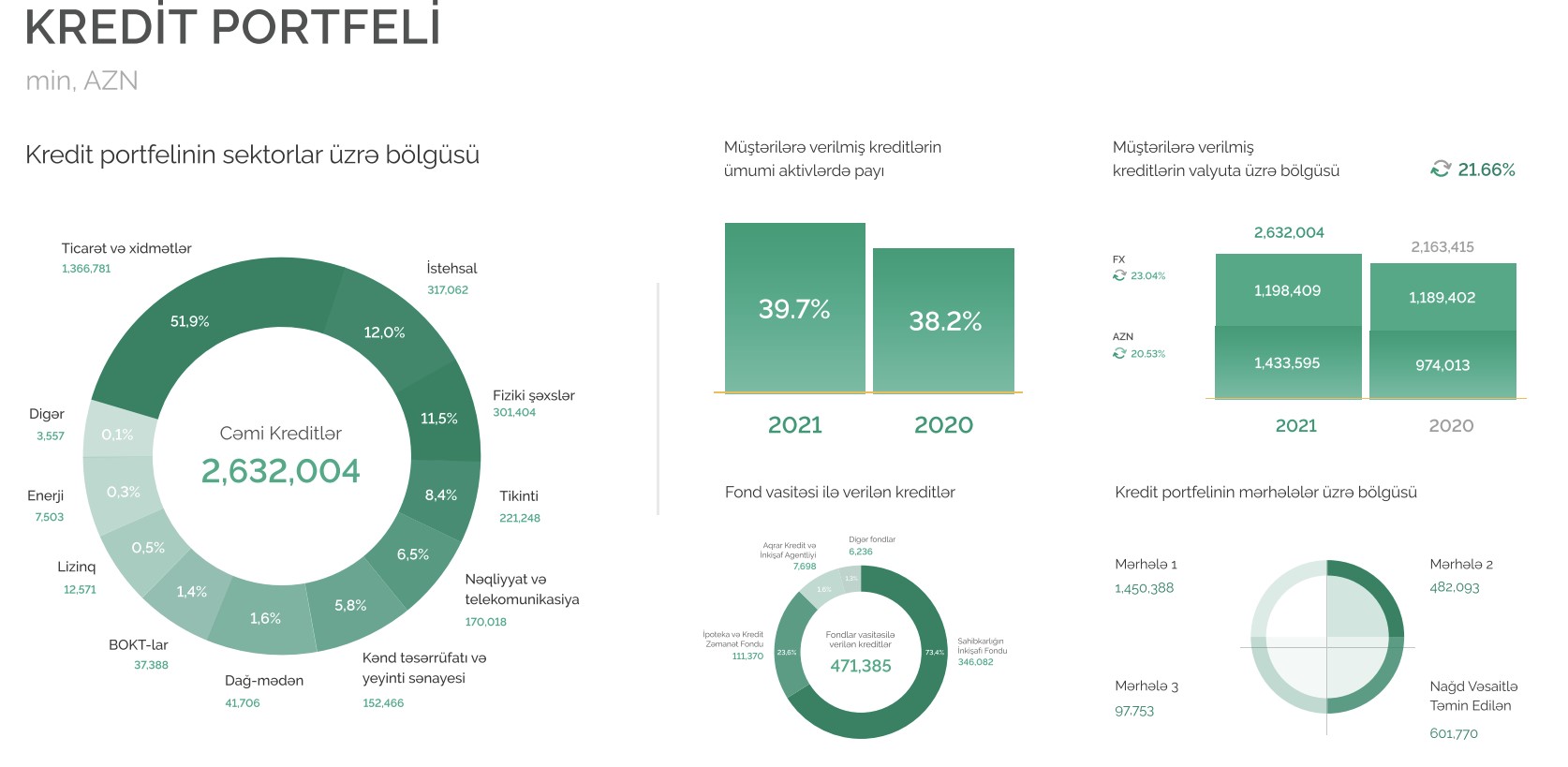 "PAŞA Bank"ın müştərilərə verdiyi cəmi kreditlər 2021-ci ilin sonunda 2 milyard 632 milyon 4 min manata çatıb.