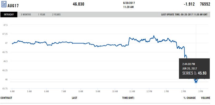 Bakı vaxtı ilə saat 15:30-a olan mıəlumata görə, Brent nefti 45,93 dolları görüb.
