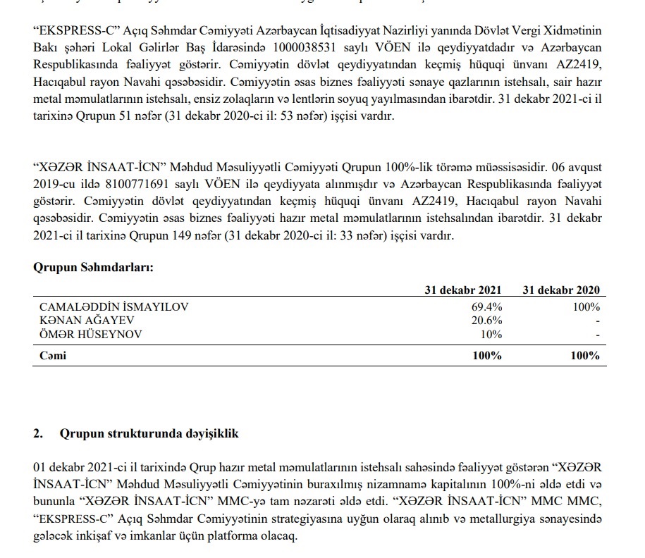 Sənaye qazlarının və metal məmulatlarının istehsalı ilə məşğul olan “AzeSteelCompany” ASC (əvvəlki adı “EKSPRESS-C” ASC) 2021-ci il üzrə maliyyə göstəricilərini açıqlayıb.