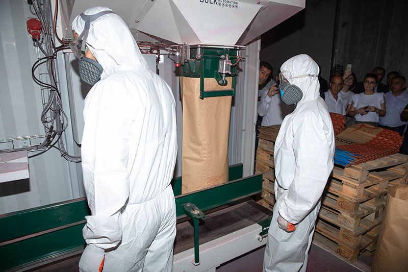Ümumi gücü 20 t/saat məhsul qəbul edə bilən dərin toxum təmizliyi, ölçüsünə, uzunluğuna, çəkisinə görə çeşidləmə, dərmanlama, toxumun qorunması və mükəmməl cücərməsini tam təmin edən toxum emalı xətti kompleksinin təqdimatı həyata keçirilmiş, emal prosesinin mərhələləri, dərmanlama, qablaşdırma, paketləmə və etiketləmə barədə ətraflı məlumat verilmiş, bütün proseslər və mərhələlər əyani olaraq nümayiş etdirilmiş və iştirakçıların çoxsaylı sualları cavablandırılmışdır.
