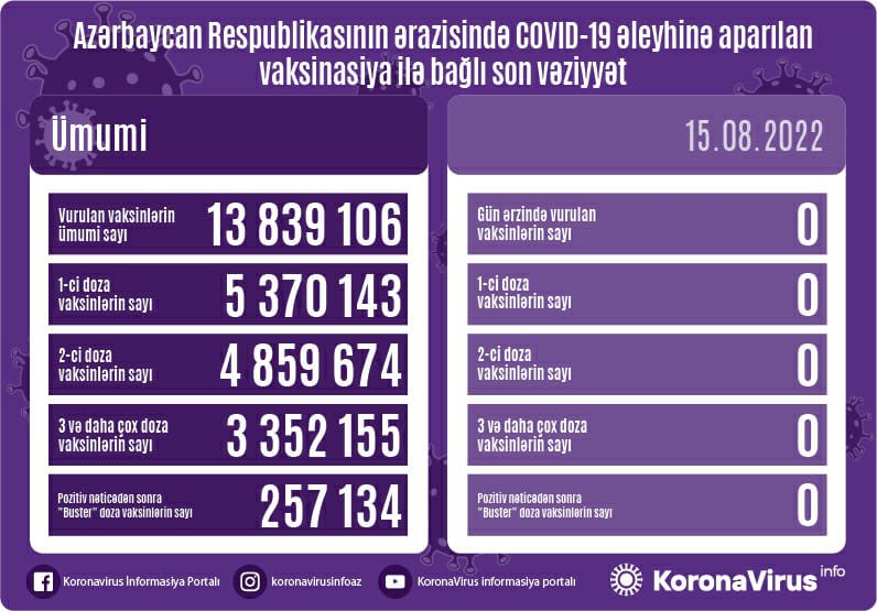 Azərbaycanda son sutkada koronavirus (COVID-19) əleyhinə vaksin vurulmayıb.