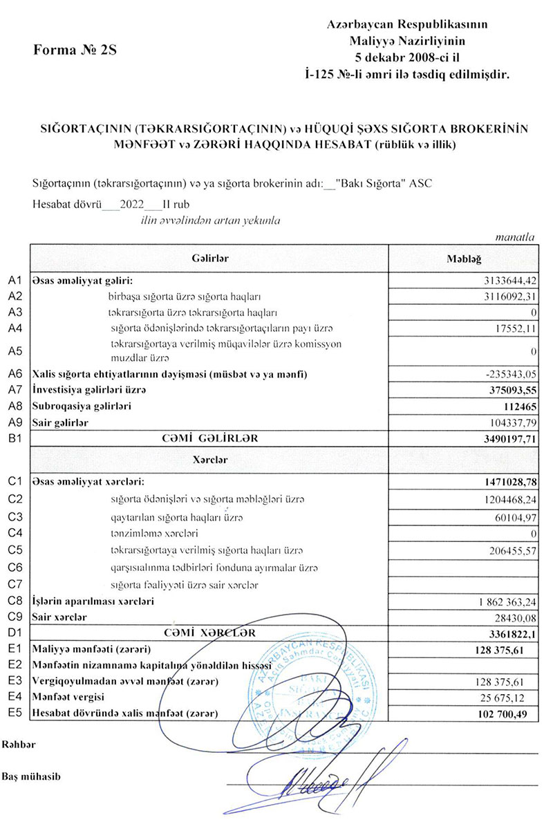 Şirkətin hesabladığı sığorta haqları və gəlirləri artıb."Bakı Sığorta" ASC 2022-ciilin birinci yarısını (yanvar-iyun dövrünü) 102 min 700 manat xalis mənfəət ilə başa vurub. Şirkət ötən ilin eyni dövrünü 1 milyon 26 min manat xalis zərər ilə bağlamışdı.