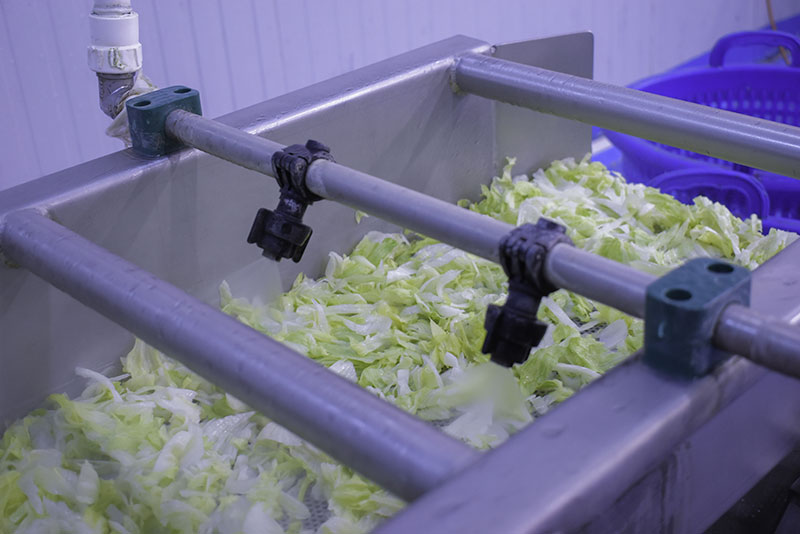 “Məhsulların yuyulmasına gəlincə, bu da 3 mərhələdə həyata keçirilir - əvvəlcə kömür, duz və əks osmos süzgəclərindən keçmiş su ilə məhsul mümkün çirkdən, həşəratlardan və ziyanvericilərdən təmizlənir.