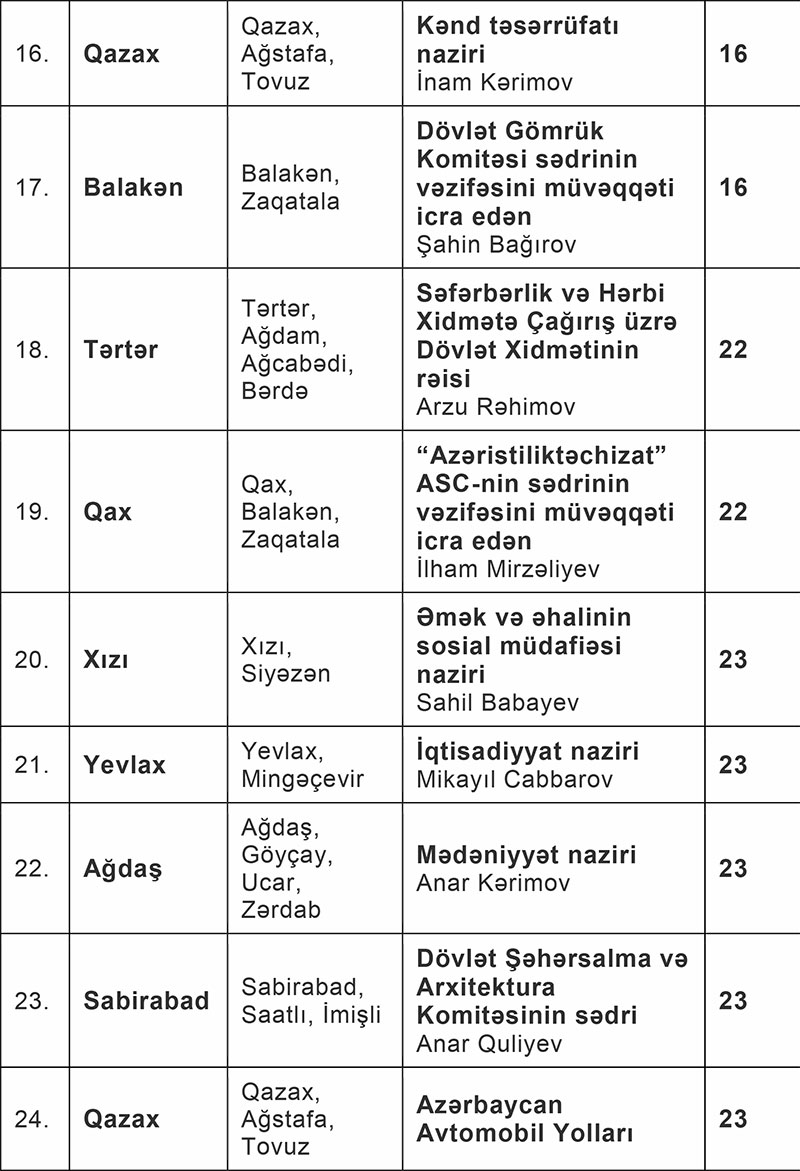 Sentyabr ayı üçün nazirlərin qəbul günləri açıqlanıb - SİYAHI