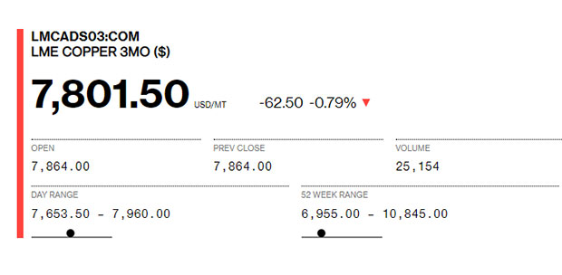 Martın əvvəlində qlobal birjalarda 1 ton misin qiyməti 10 min 800 dolları keçmişdi (10 845 dollar/mt). Bu gün isə 1 ton misin qiyməti 7600 dollar səviyyələrinədək geriləyib.