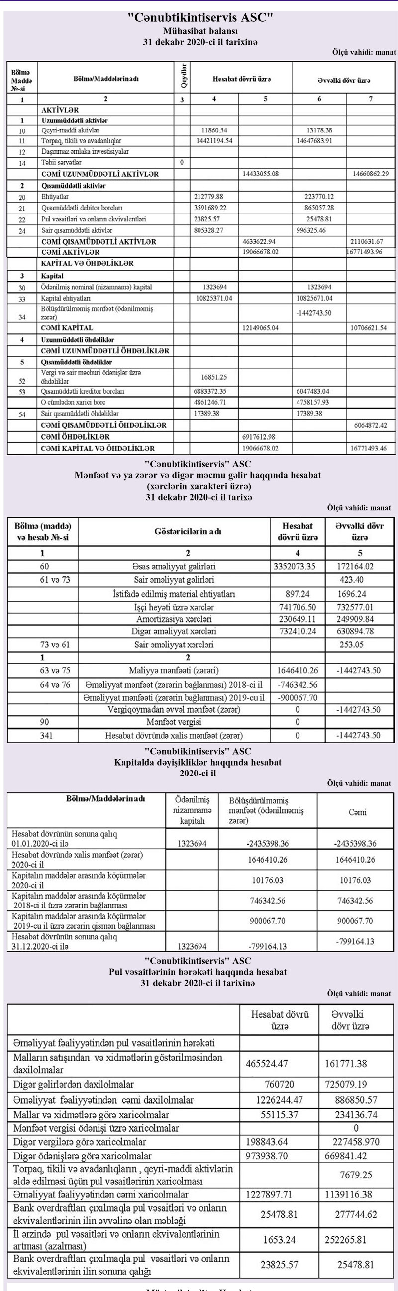 "Cənubtikintiservis" ASC 2021-ci ili 1 milyon 388 min manat xalis mənfəət ilə başa vurub. Halbuki, şirkət 2020-ci ili 1 milyon 646 min manat maliyyə mənfəəti ilə bağlamışdı. "Cənubtikintiservis" 2020-ci il mənfəətinin hamısını 2018-ci və 2019-cu illərin zərərini bağlamağa yönəltmişdi.