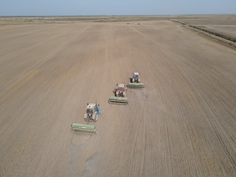 Aqroparkın ümumi əkinə yararlı 6920 hektar sahəsinin 380 hektarında arpa, buğda, 15 hektarında silos qarğıdalı, 30 hektarında darı, 130 hektarında pambıq, 120 hektarında yonca əkilib, 316,5 hektar ərazidə isə badam və nar, 1 hektarında zeytun, 5 hektarında isə sınaq üçün quru meyvə tədarükü üçün bağ (quru meyvəlik bağda şaftalı, ərik, 3 növ gavalı ağacları əkilib) salınıb.