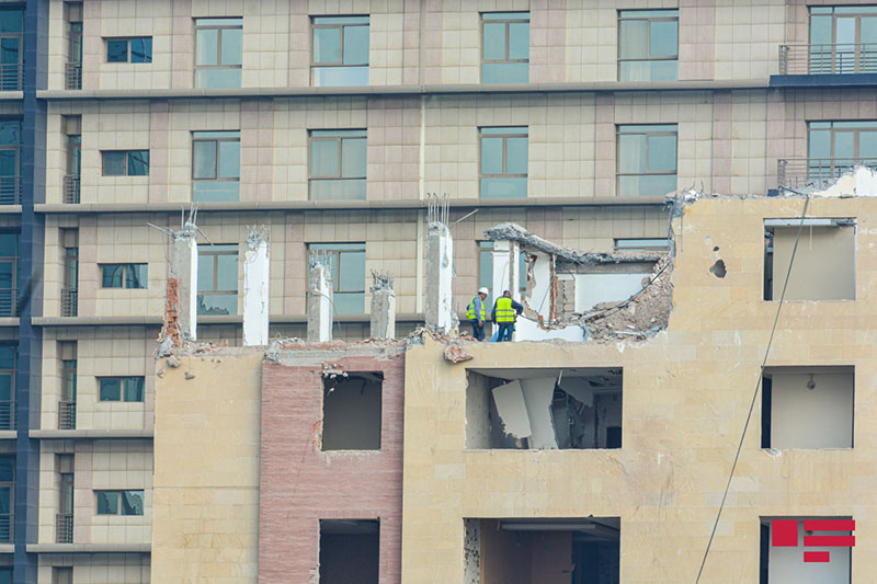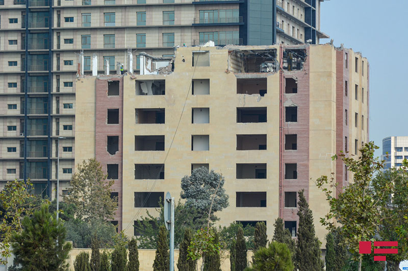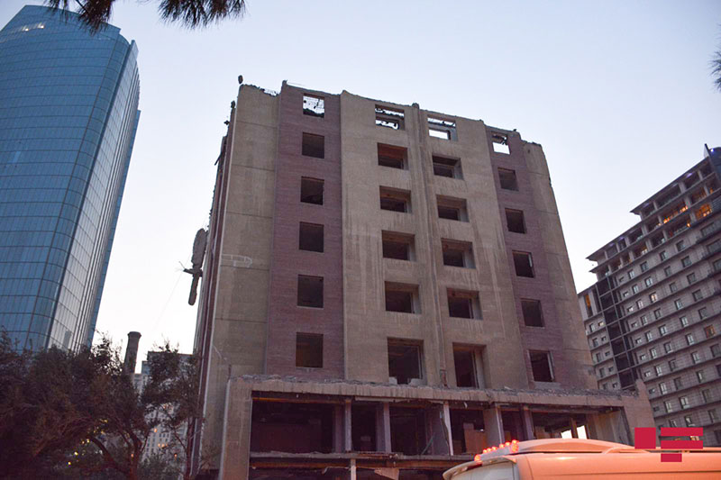 Bakı şəhəri, Xətai rayonunda Yusif Səfərov və Afiyəddin Cəlilov küçələrinin kəsişməsində yerləşən çoxmərtəbəli bina sökülür.