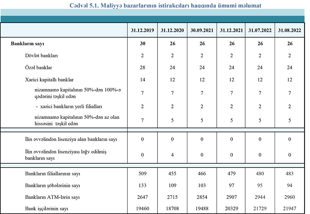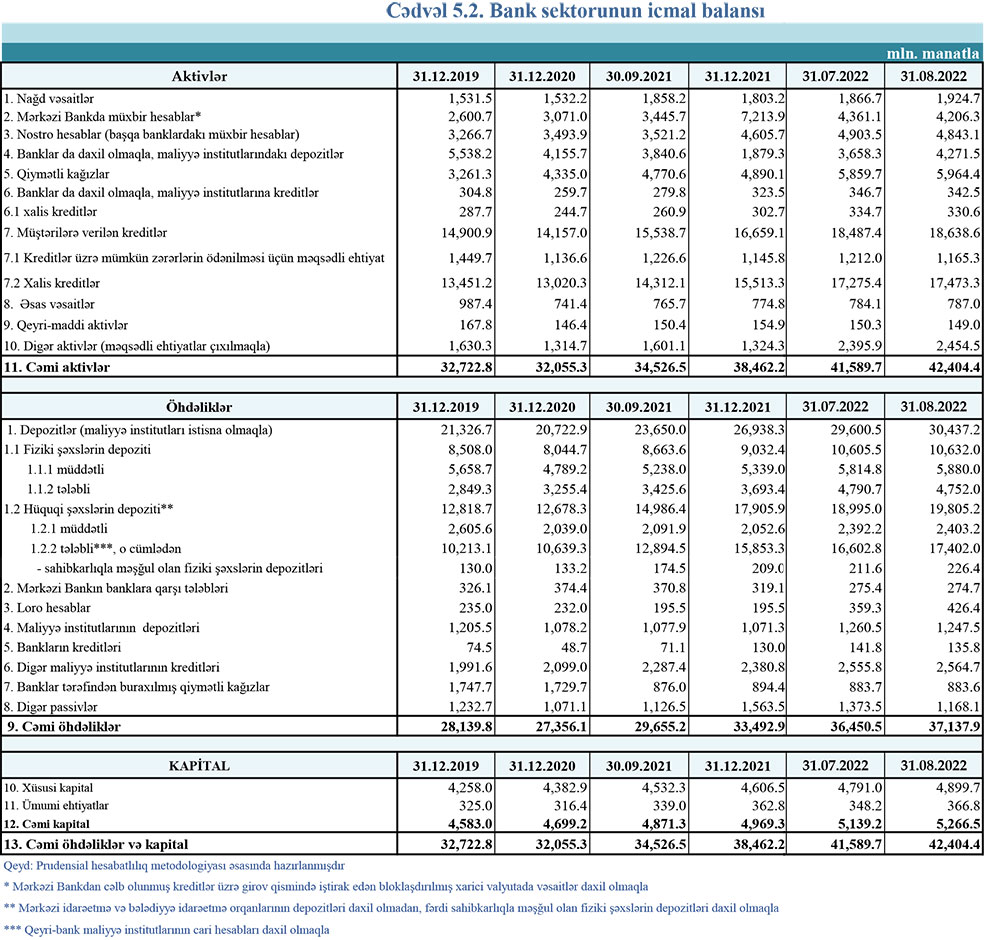 31 avqust 2022-ci il tarixinə olan bank sektorunun əsas göstəriciləri açıqlanıb.