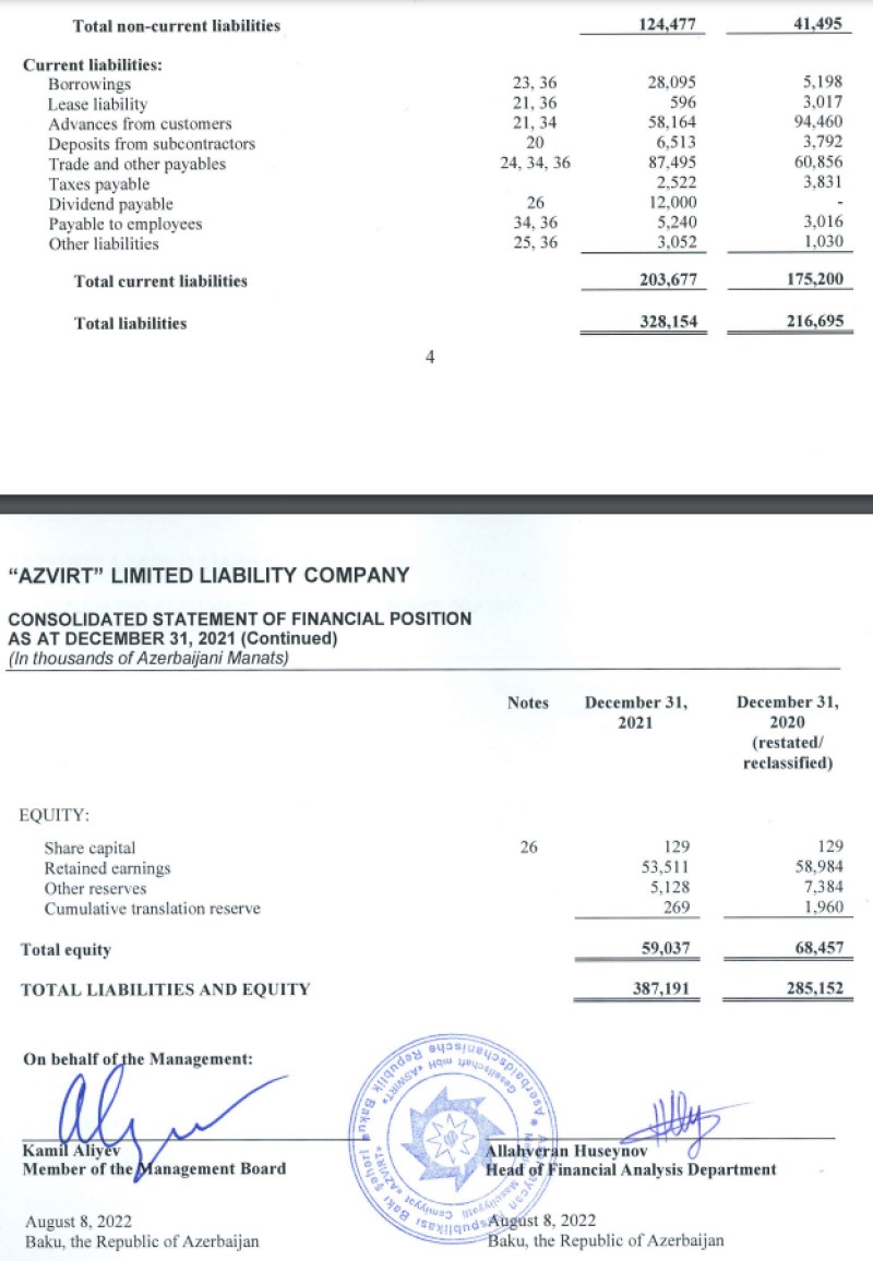 Azərbaycanın ən böyük və tanınmış yol tikinti şirkətlərindən biri olan "AzVirt" 2021-ci ili 6 milyon 527 min manat xalis mənfəət ilə başa vurub."AzVirt" şirkətinin xalis mənfəəti 2020-ci illə müqayisədə 2021-ci ildə 2,1 dəfə artıb. Şirkət 2020-ci ili 3 milyon 63 min manat xalis mənfəət ilə bağlamışdı.