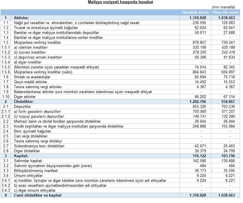 Hesabat dövrü ərzində Bankın məcmu gəlirlərində ciddi artım qeydə alınıb. 9 ay ərzində cəmi gəlirləri ötən ilin müvafiq dövrü ilə müqayisədə 40 % artaraq, 163 milyon manat təşkil edib. Beləliklə, 9 aylıq dövrün nəticələrinə görə faiz gəlirləri 118 milyon manat, qeyri-faiz gəlirləri isə 45 milyon təşkil edib. Bununla da Bankın qeyri-faiz gəlirləri ötən ilin uyğun dövrü ilə müqayisədə 57%, faiz gəlirləri isə 35% artıb. Cari dövrdə bankın əməliyyat mənfəət göstəricisi 16 milyon manat təşkil edib.