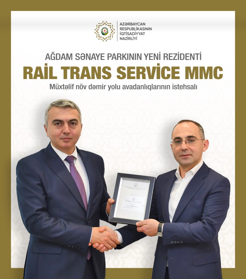 Agentliyin yaydığı məlumata görə, yeni rezident “Rail Trans Service” Məhdud Məsuliyyətli Cəmiyyəti Sənaye Parkının 1 hektar ərazisində “Avtomatlaşdırma və telemexanika sistemlərinin istehsalı” layihəsini həyata keçirəcək. Layihə çərçivəsində müxtəlif növ dəmir yolu avadanlıqları istehsal ediləcək.
