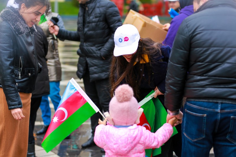 8 Noyabr “Zəfər günü” və 9 Noyabr “Bayraq günü” münasibətilə vətəndaşlara şanlı Azərbaycan bayraqları hədiyyə olunub. Təşəbbüs “Nar” və AKTİ-dən 200 könüllünün birgə iştirakı ilə paxtaxtın mərkəzi küçələrində həyata keçirilib. Vətəndaşlarımızın böyük sevinc və qürur hissi ilə qarşıladığı layihədən görüntüləri buradan izləyə bilərsiniz.