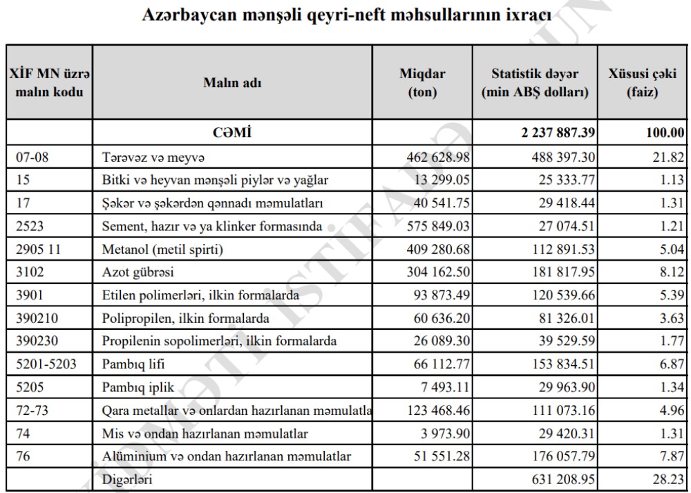 Azərbaycanın ən çox ixrac və idxal etdiyi mallar
